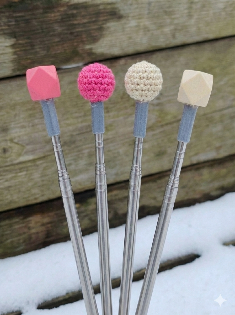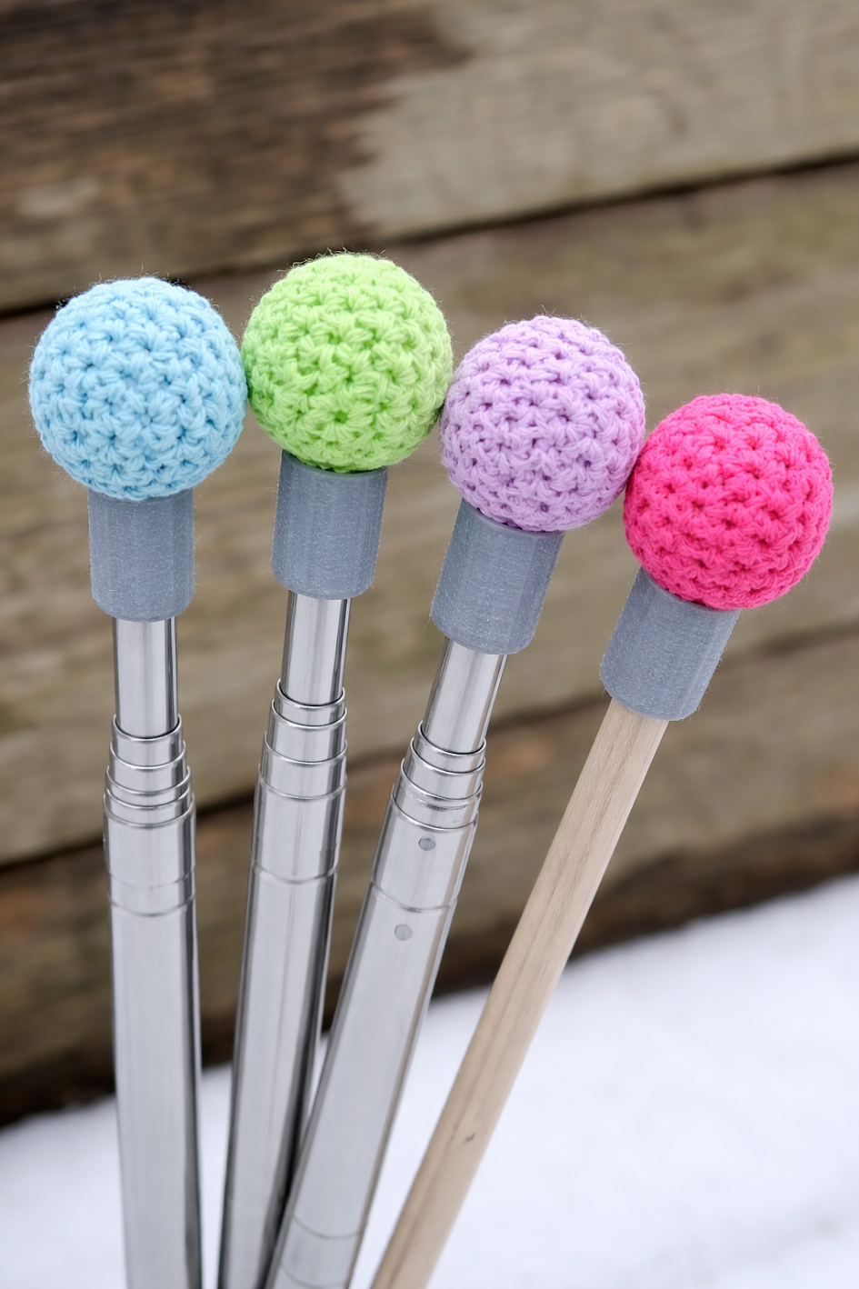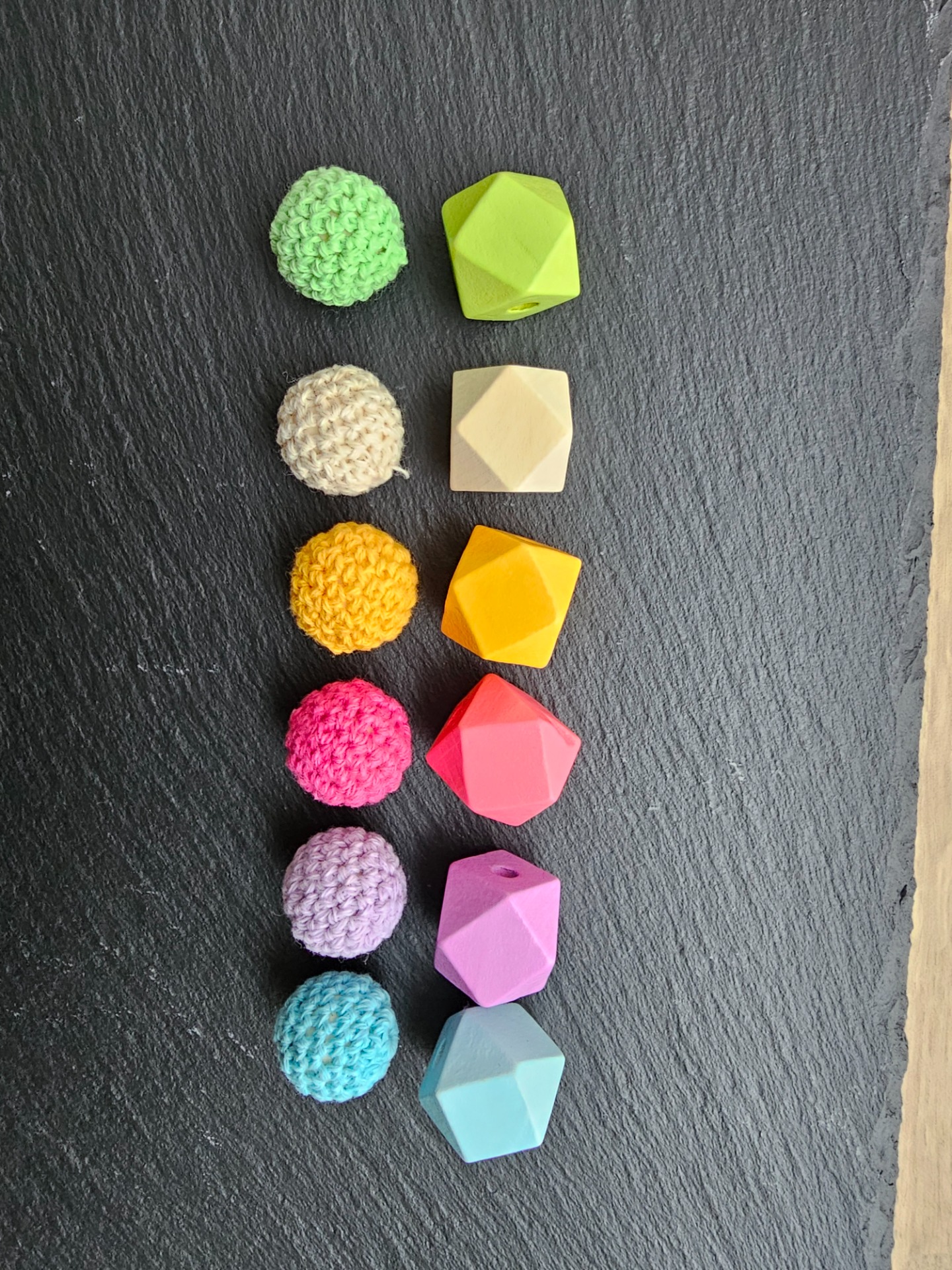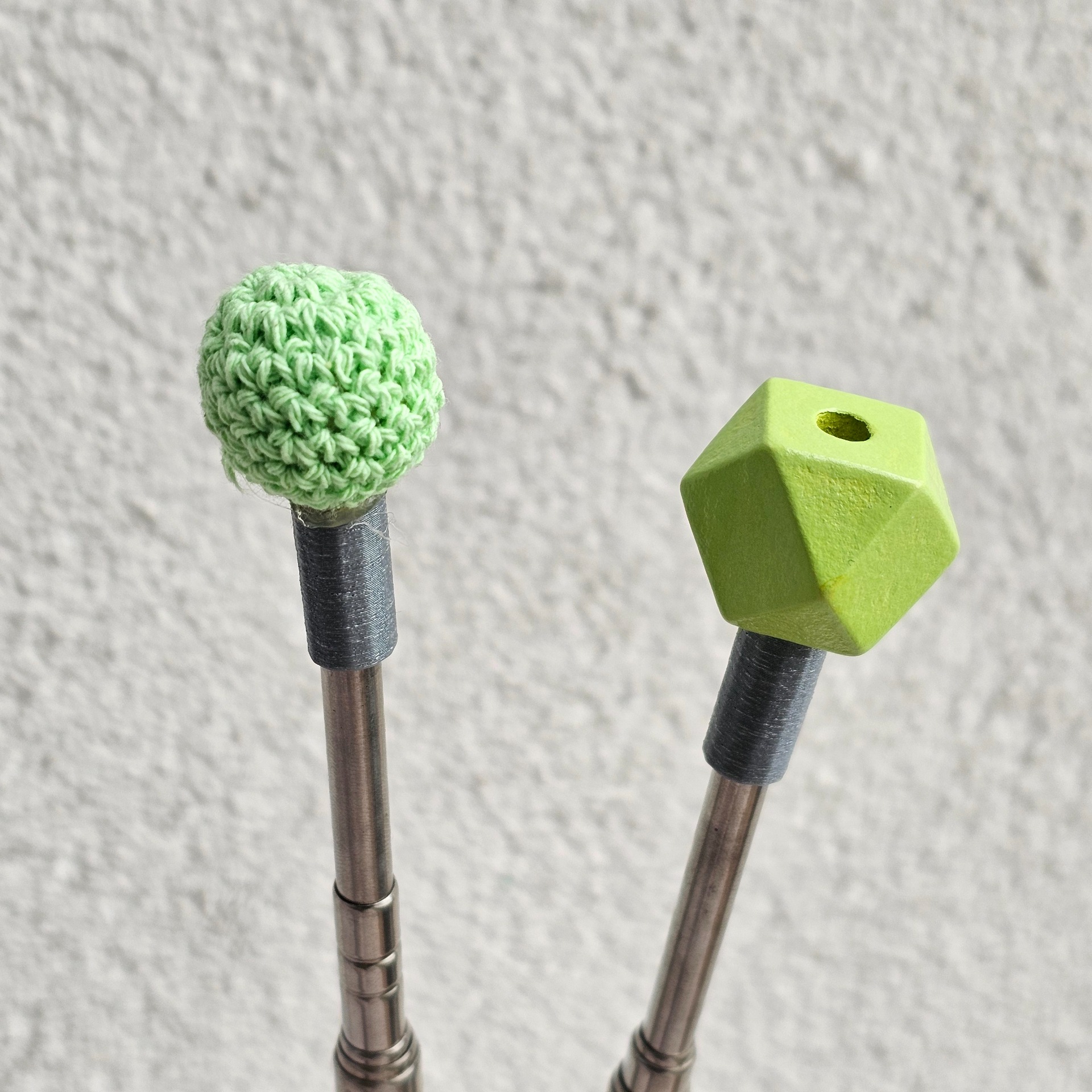 Náš tip: pořiďte si k háčkovaným bambulkám také sadu dřevěných hlavic na ukazovátko v odpovídajících nebo různých barvách. Můžete je využít napříklald při double spottingu (kontrast kulatého a hranatého tvaru) nebo jako resource spot.