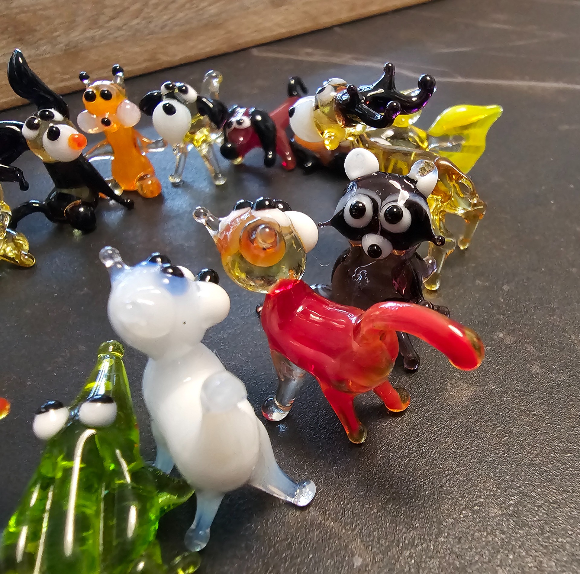 Vyměnitelná hlavice na ukazovátko se skleněnou figurkou mývala.