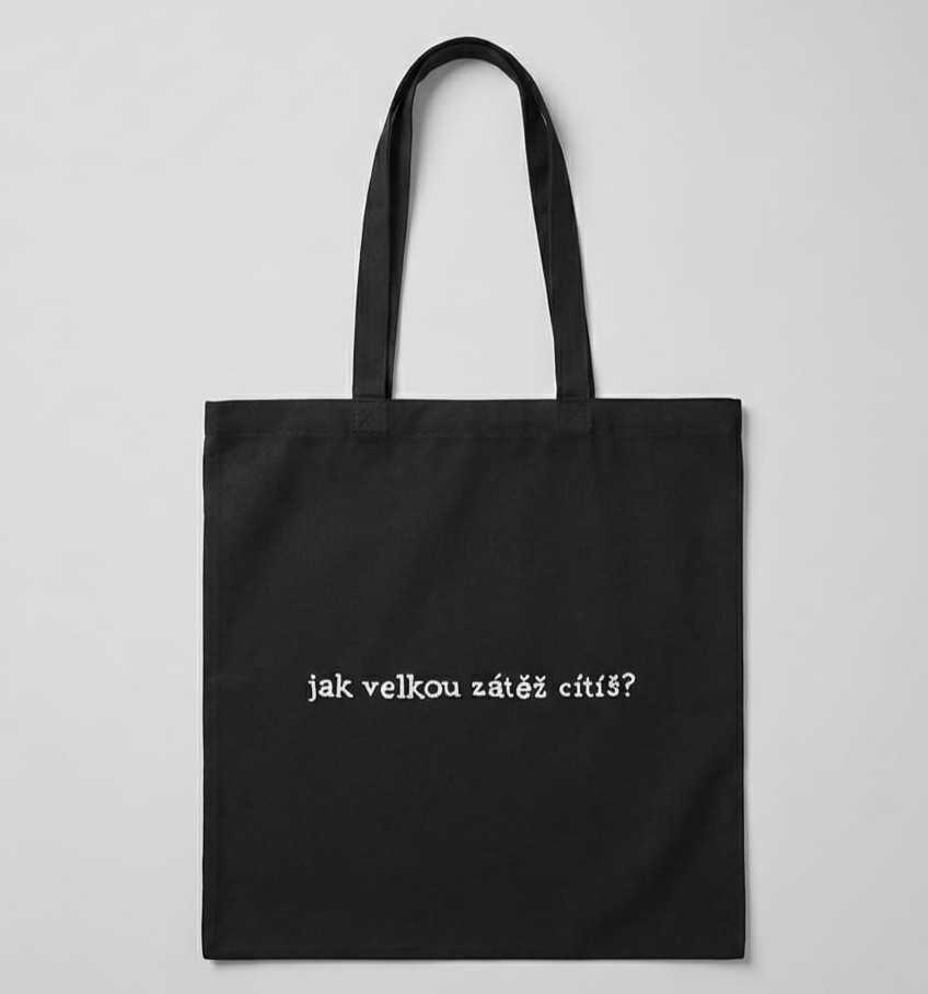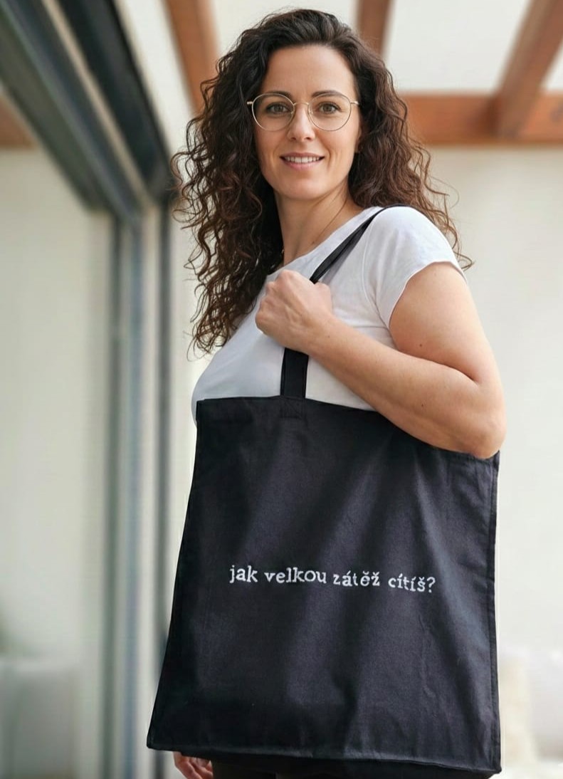 Nákupní taška pro všechny, kdo propadli EMDR. Na jedné straně nápis Jak vekou zátěž cítíš?, z druhé strany je SUD