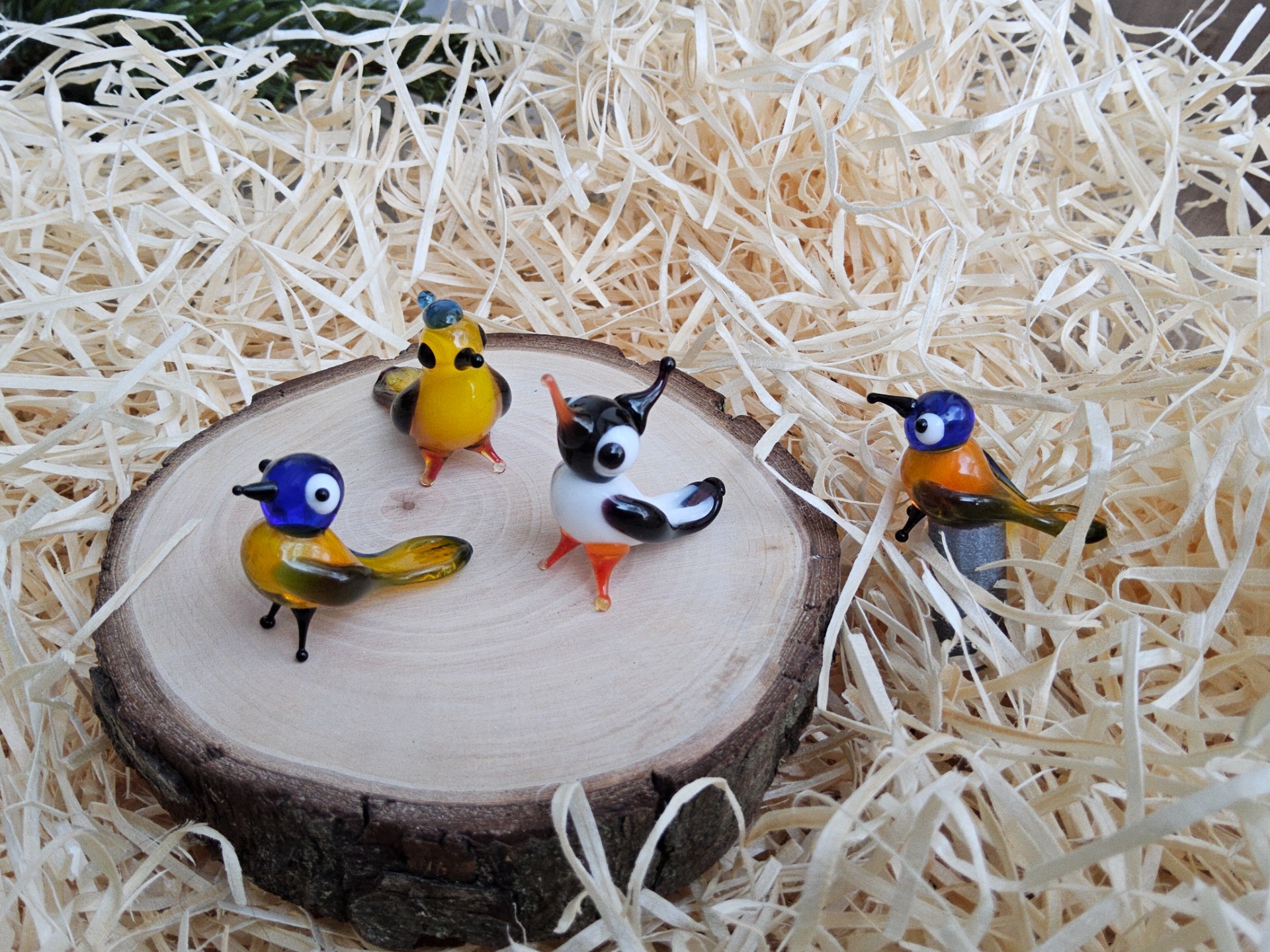 Vyměnitelná hlavice na ukazovátko s rozkošnou skleněnou figurkou ptáčka.