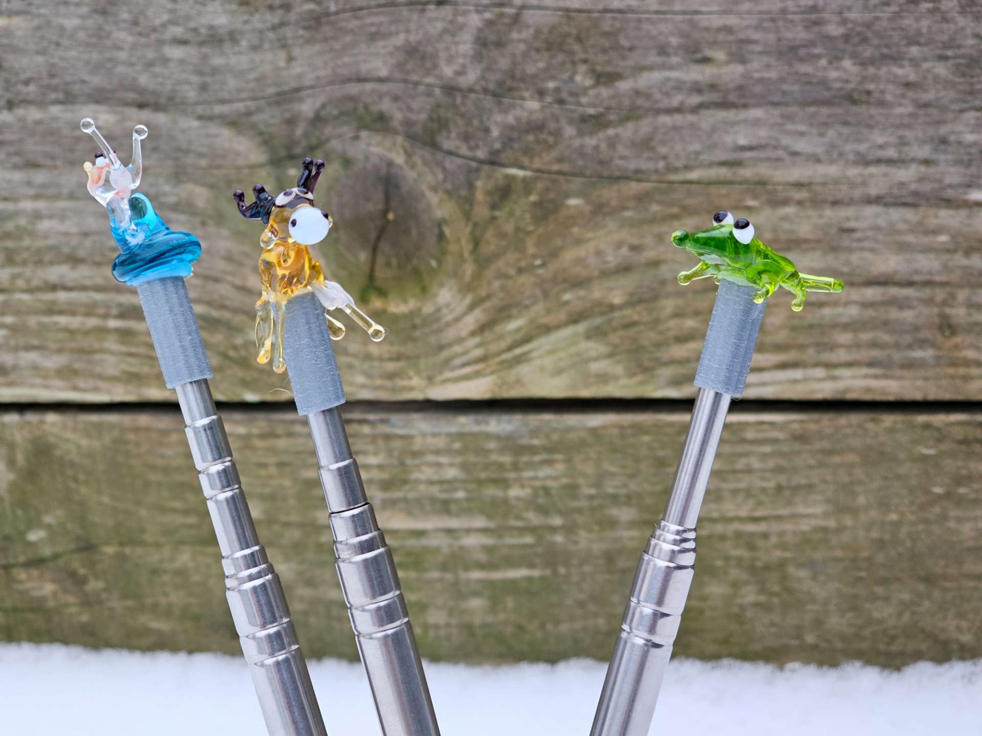 Vyměnitelná hlavice na ukazovátko se skleněnou figurkou soba.