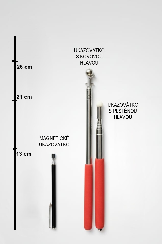 Teleskopický ukazovateľ pre brainspotting. Dĺžka v zloženom stave cca 21 cm, maximálna dĺžka 100 cm.
